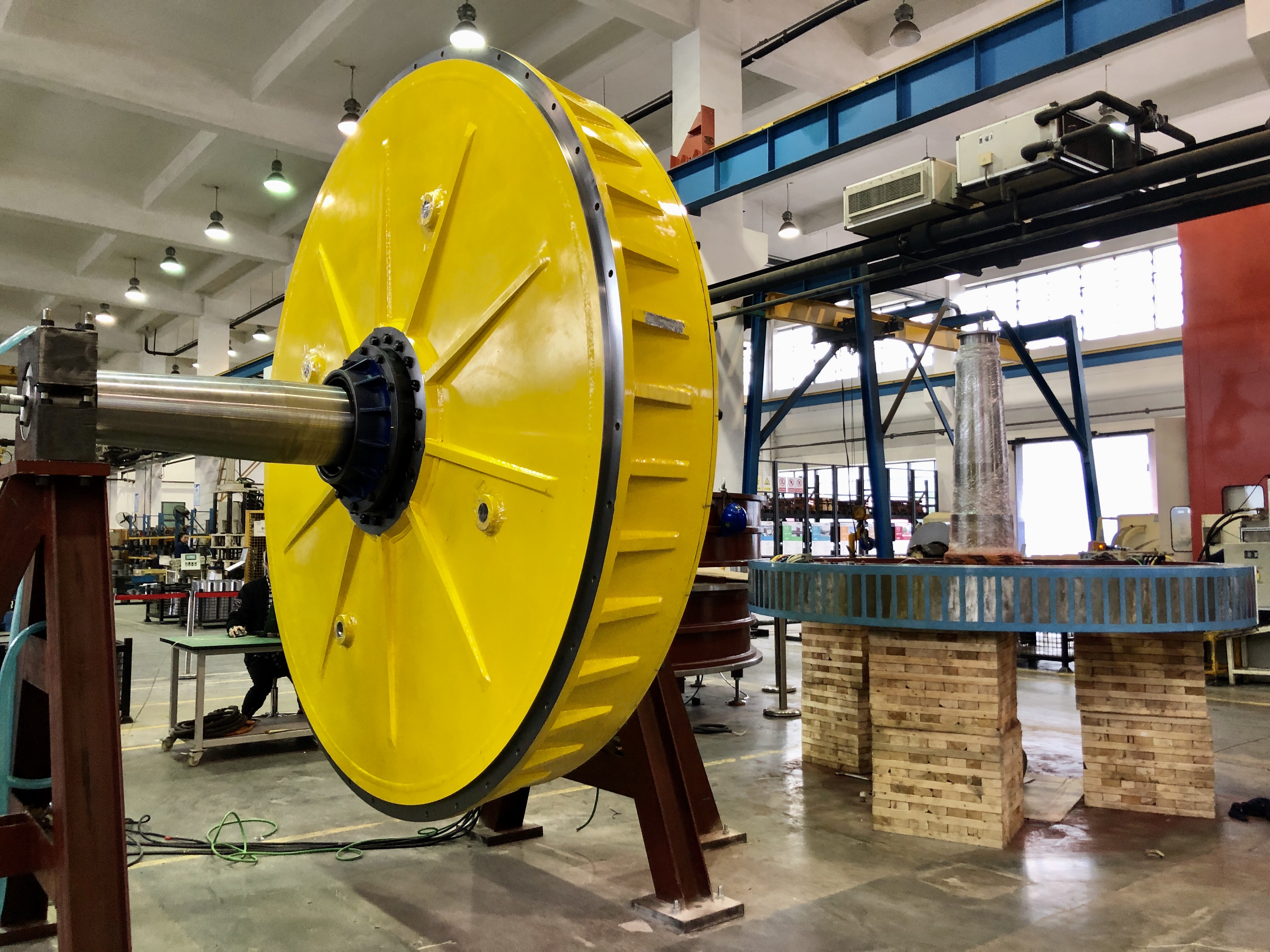 菲仕研發(fā)并制造的大型直驅(qū)電機成功應用于寶鋼集團斗輪機設(shè)備,該設(shè)備用于鋼鐵廠原材料的采集與運輸,是一種高效的連續(xù)取料的堆取裝置。電機外徑接近3米,額定扭矩93000牛米 , 額定轉(zhuǎn)速 6 r/min,效率高達96%。菲仕通過對傳統(tǒng)異步機的改造,采用直驅(qū)電機,去除減速箱,提升系統(tǒng)效率,同時大大減少斗輪機系統(tǒng)的維護頻次。